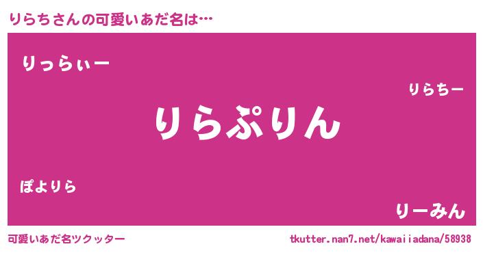 | ヘコむあだ名 | 『りら太郎』『つくし』『りらもー』 |
