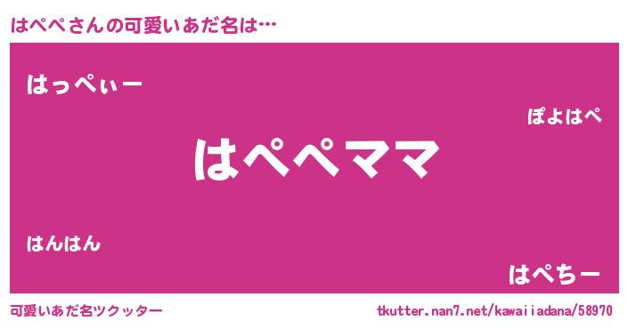 | ヒーロー風カッコイイあだ名 | 『ネオハペペ』『黄金騎士ハペ』 |