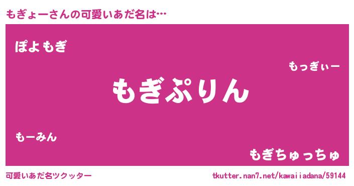 | ヘコむあだ名 | 『もぎぷりん』『もぎょー(小並感)』 |