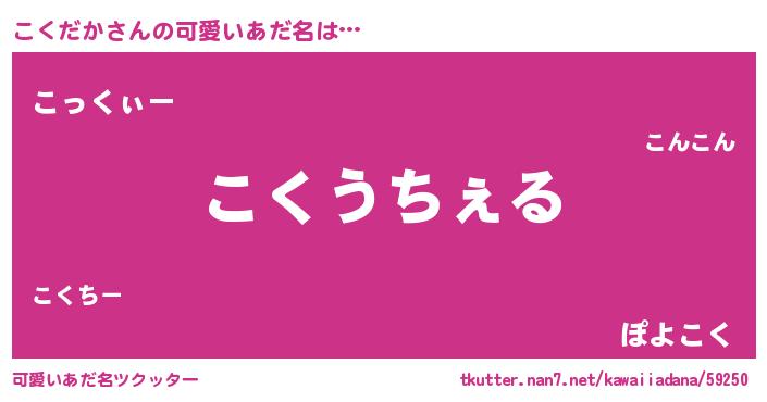 | 意味不明あだ名 | 『自称こくだか』『ペロリンこくだか』 |