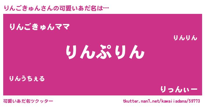 | 男性向けラノベタイトル風あだ名 | 『りんごきゅん~年齢イコール彼女いない歴の魔法使い~』 |