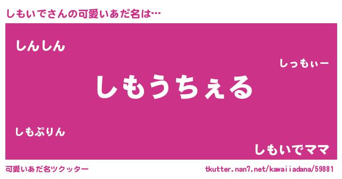 | 女子向けラノベタイトル風あだ名 | 『しもいでなんてお断りですっ。』 |