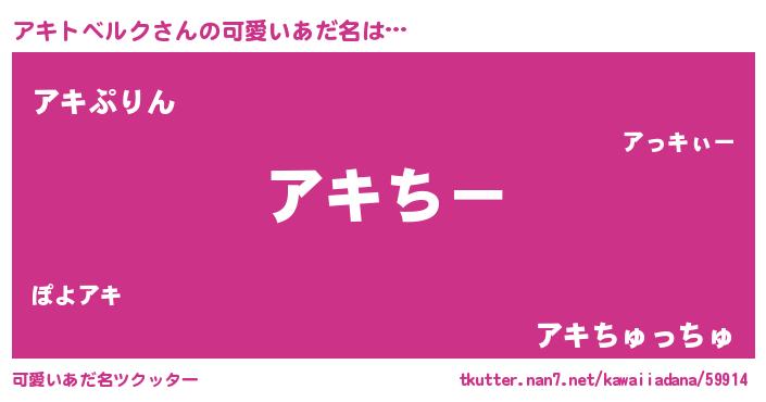 | 意味不明あだ名 | 『アキトベルクフォーエバー』 |
