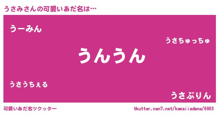 | ヘコむあだ名 | 『うさにー』『酢こんぶ』『うさっ子』 |