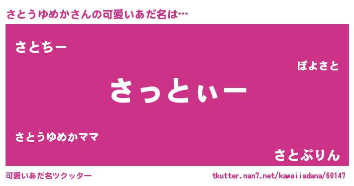 | ポケモン風あだ名 | 『ヒサトウユメカ』『サトウダネ』 |
