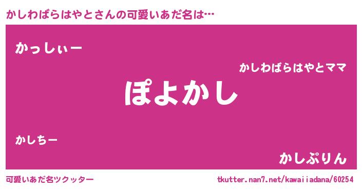 | ヘコむあだ名 | 『かしぷりん』『かしわばらはやと(震え声)』 |