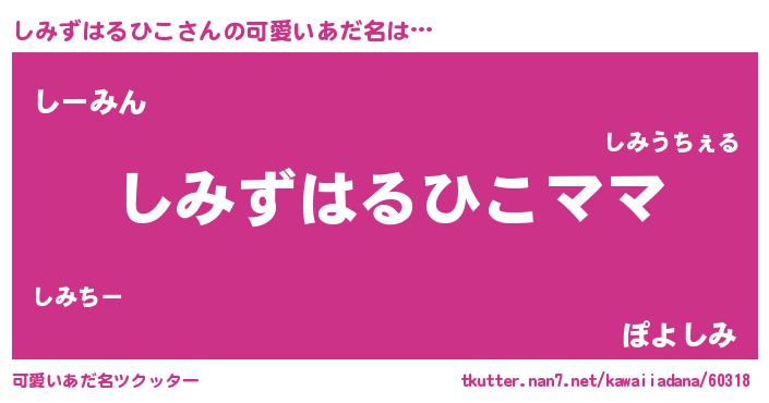 | 意味不明あだ名 | 『永久保存しみずはるひこ』 |