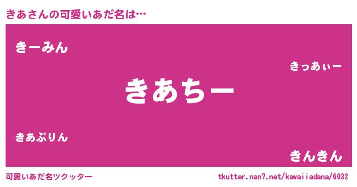 | ヘコむあだ名 | 『酢こんぶ』『きあにゅー』『きあを』 |