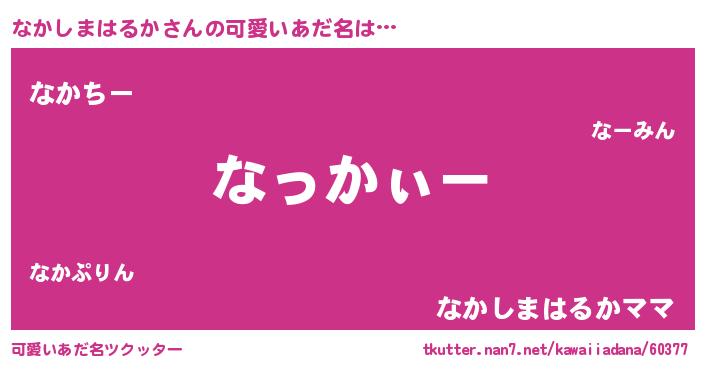 | 男性向けラノベタイトル風あだ名 | 『なかしまはるかの嫁は女の子じゃないと思った?』 |