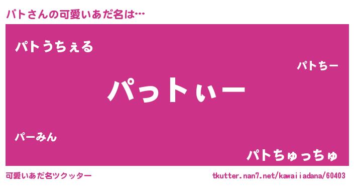 | ポケモン風あだ名 | 『ヒパト』『パトセウス』『パトダネ』 |