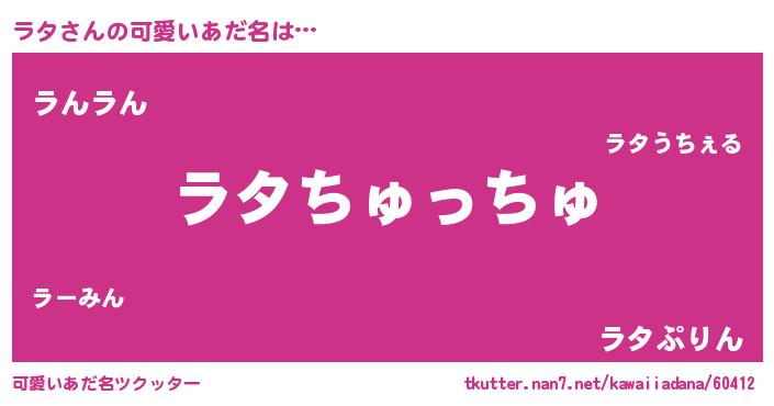 | ヘコむあだ名 | 『ラタもー』『ラタぷりん』 |