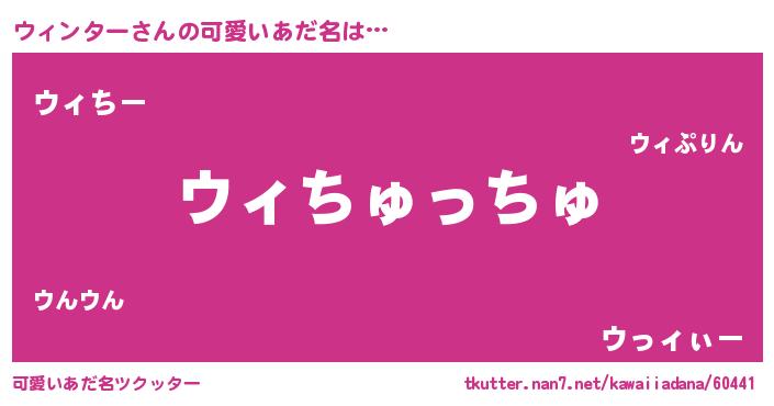 | 男性向けラノベタイトル風あだ名 | 『おまえをオタクにしてやるから、俺をウィンターにしてくれ! 』 |