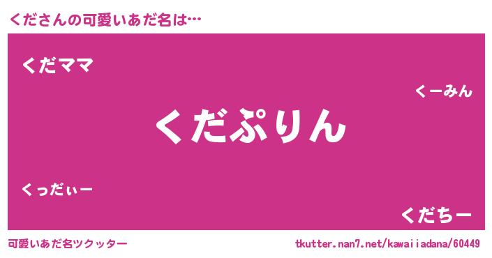 | 恥ずかしいあだ名 | 『くだちん』『くだっちょ』 |