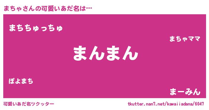 | 意味不明あだ名 | 『ペロリンまちゃ』『永久保存まちゃ』 |