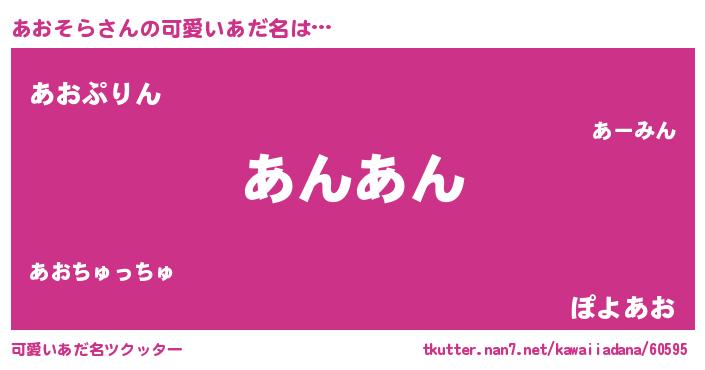 | 意味不明あだ名 | 『ペロリンあおそら』『永久保存あおそら』 |