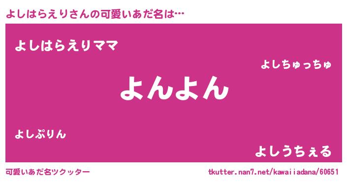 | 欧米人風あだ名 | 『マイケルよしはらえり』 |