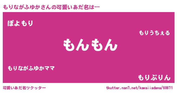 | ヘコむあだ名 | 『もりもー』『もりながふゆか(笑)』 |