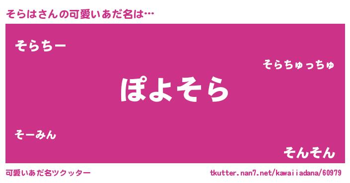 | ヘコむあだ名 | 『つくし』『そらもー』『そらは(爆)』 |