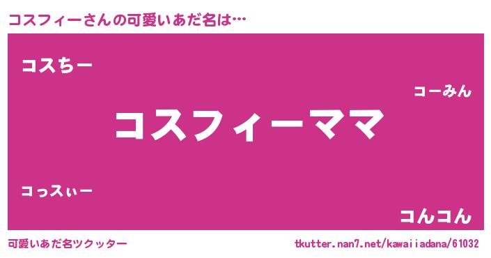 | 意味不明あだ名 | 『永久保存コスフィー』 |