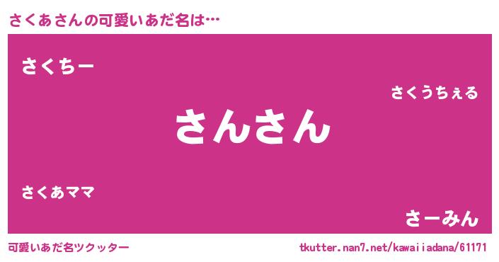| 意味不明あだ名 | 『ペロリンさくあ』『さくあフォーエバー』 |