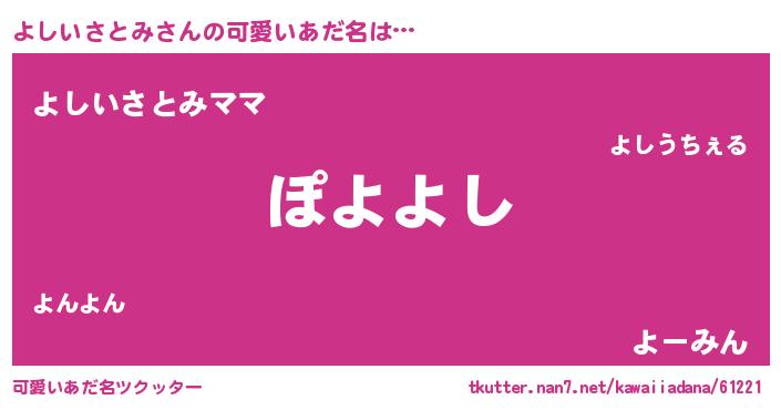 | ヘコむあだ名 | 『よしいさとみ(遠い目)』『よしもー』 |