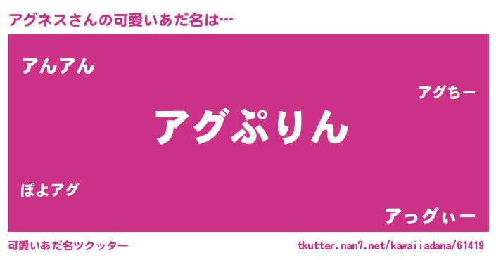 | 恥ずかしいあだ名 | 『プリティーアグネス』『アグリンリン』 |