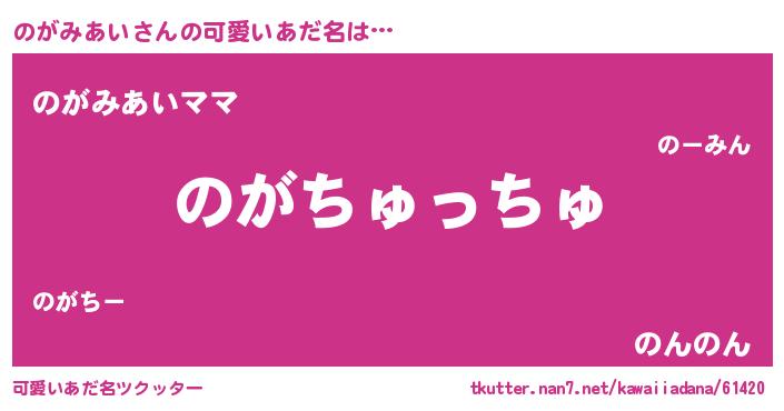 | ヘコむあだ名 | 『のがみあい(小並感)』『のがにー』 |