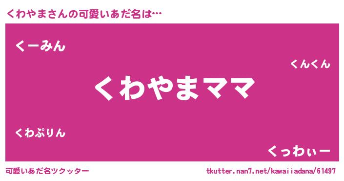 | 意味不明あだ名 | 『永久保存くわやま』『ペロリンくわやま』 |