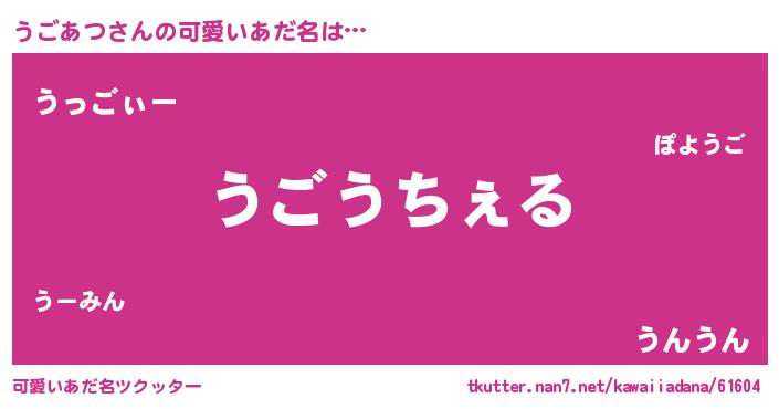 | 意味不明あだ名 | 『自称うごあつ』『ペロリンうごあつ』 |