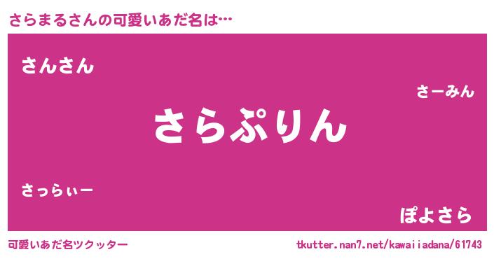 | 男性向けラノベタイトル風あだ名 | 『転生したらさらまるだった件』 |