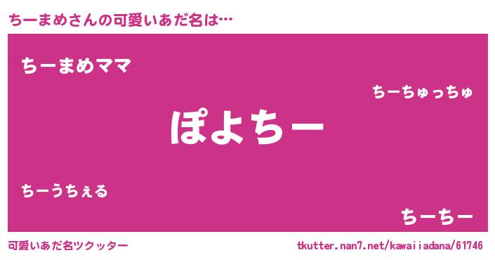 | 男性向けラノベタイトル風あだ名 | 『魔弾の王とちーまめ』 |