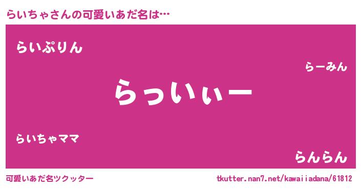 | 恥ずかしいあだ名 | 『ライリンリン』『プリティーらいちゃ』 |
