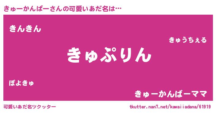 | 料理風あだ名 | 『きゅーかんばーごはん』 |