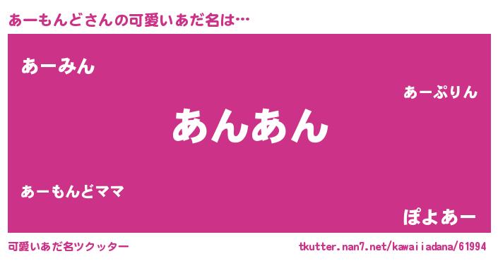 | 男性向けラノベタイトル風あだ名 | 『あーもんどの憂鬱』 |
