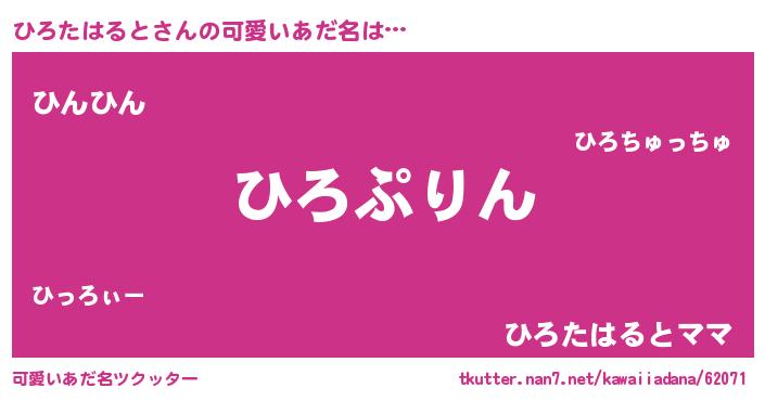 | 恥ずかしいあだ名 | 『プリティーひろたはると』『ひろちん』 |
