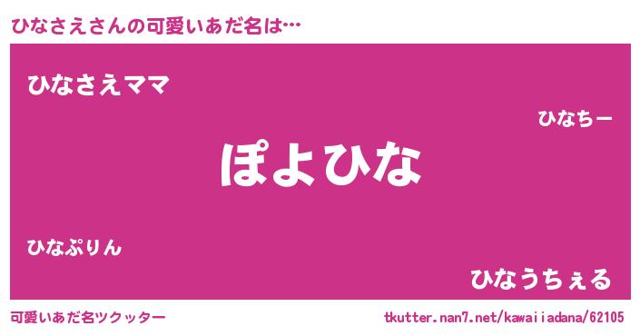| 意味不明あだ名 | 『住所不定無職ひなさえ(2歳)』 |