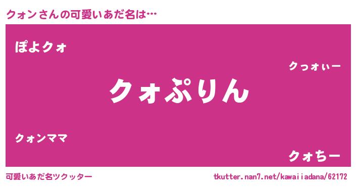 | 恥ずかしいあだ名 | 『クォっちょ』『クォリンリン』 |