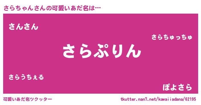 | 男性向けラノベタイトル風あだ名 | 『さらちゃん~年齢イコール彼女いない歴の魔法使い~』 |