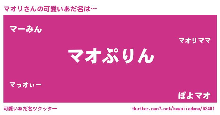 | 男性向けラノベタイトル風あだ名 | 『マオリ~年齢イコール彼女いない歴の魔法使い~』 |