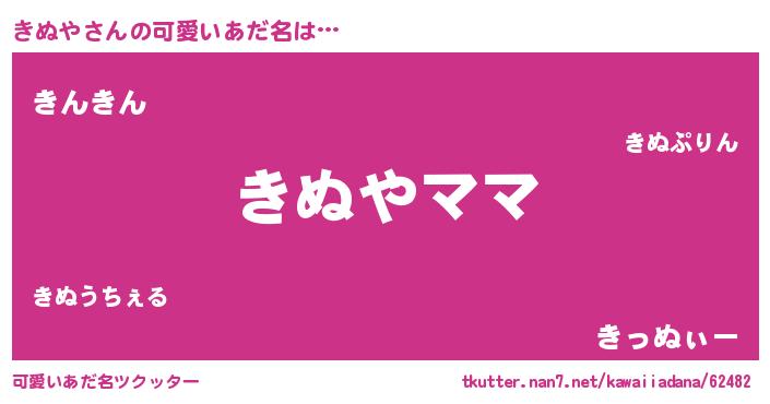 | 意味不明あだ名 | 『永久保存きぬや』『ペロリンきぬや』 |