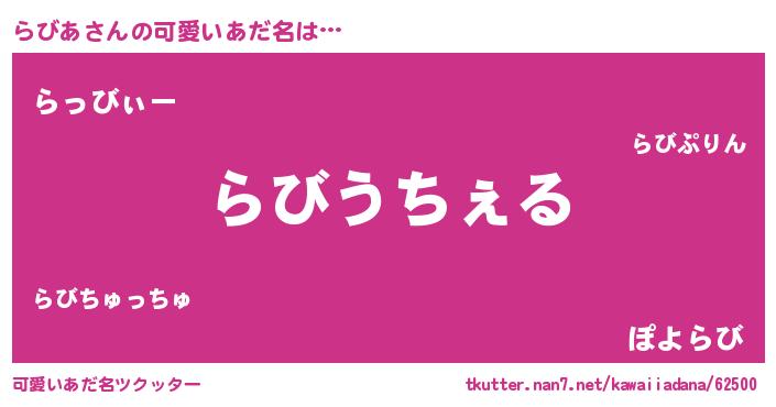 | ヘコむあだ名 | 『らびを』『豆乳』『らびふぇ~』 |