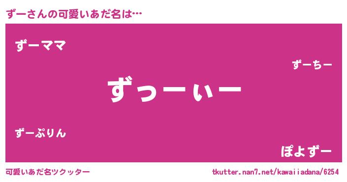 | 女子向けラノベタイトル風あだ名 | 『ずーは平凡を望む』『ずーの雑貨屋さん』 |