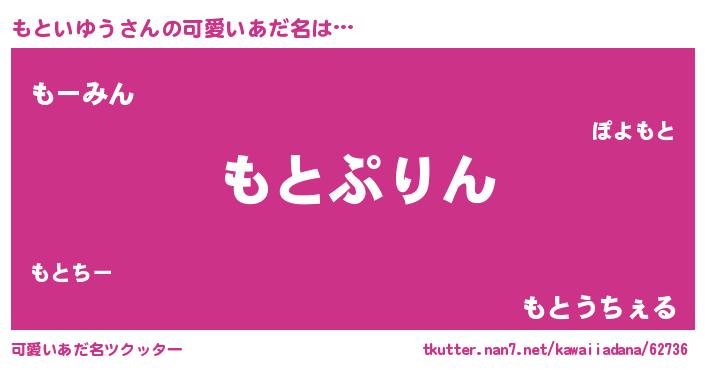 | 男性向けラノベタイトル風あだ名 | 『もといゆう~年齢イコール彼女いない歴の魔法使い~』 |