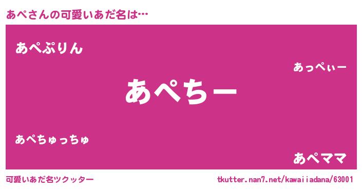 | ポケモン風あだ名 | 『アペダネ』『アペキング』『ヒアペ』 |