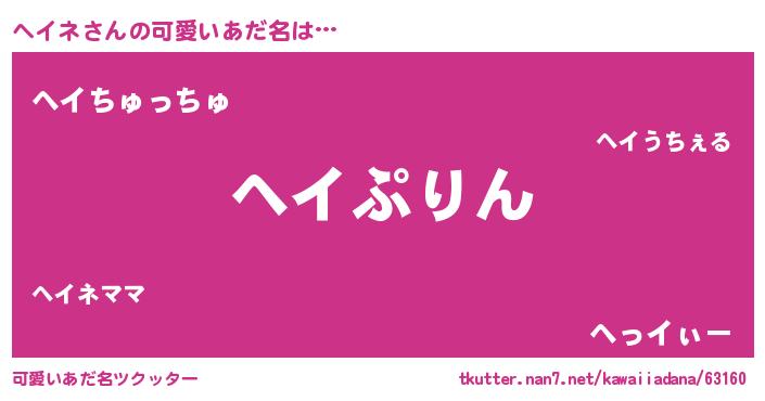 | 料理風あだ名 | 『ヘイネごはん』『ヘイネの豆乳スープ』 |
