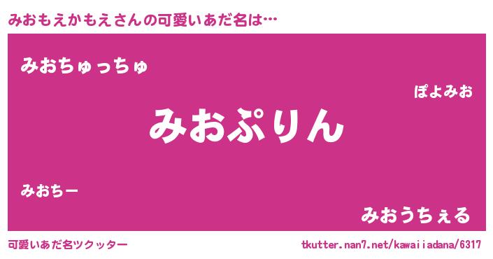 | 料理風あだ名 | 『みおもえかもえごはん』 |