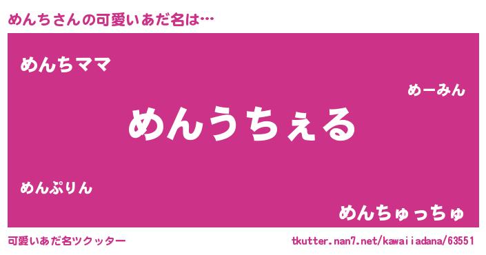 | ヘコむあだ名 | 『めんち(震え声)』『めんにゅー』 |