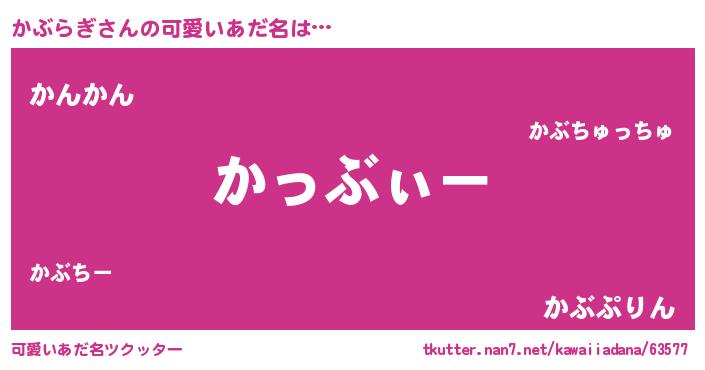 | 男性向けラノベタイトル風あだ名 | 『かぶらぎの嫁は女の子じゃないと思った?』 |