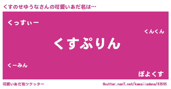 | 女子向けラノベタイトル風あだ名 | 『くすのせゆうなの玉の輿計画!』 |
