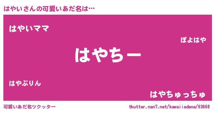 | 恥ずかしいあだ名 | 『はやっちょ』『はやちん』 |